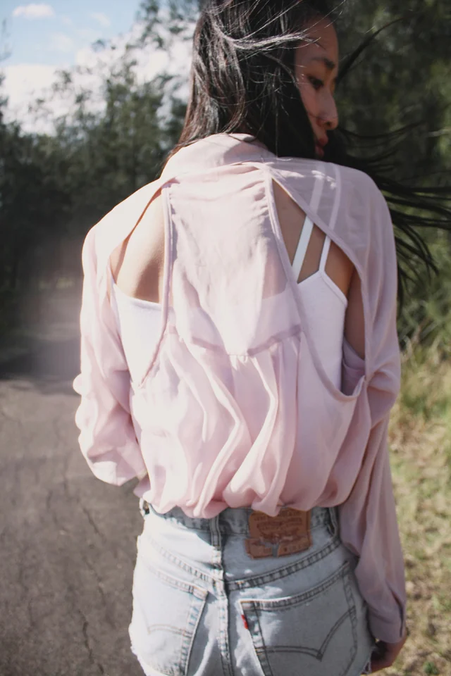 valleygirl blouse, thrifted levi shorts, burgundy shawl