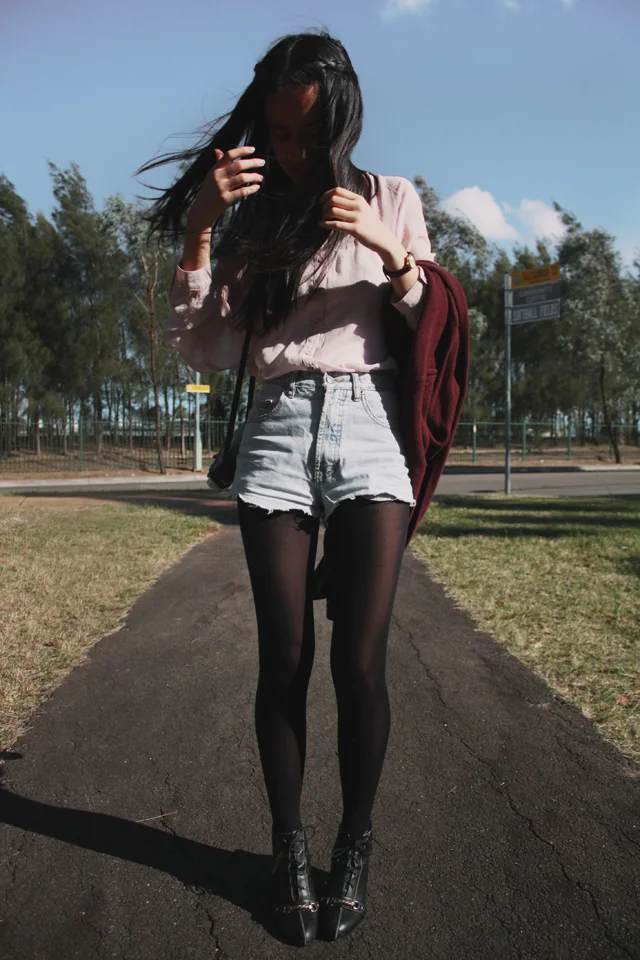 the weather was so nice today... makes me so much more excited for spring! the warm weather was enough of an excuse for me to wear my $3 levi shorts (bargain, right?!) that i was lucky enough to find at newtown markets. my favourite colour this season is burgundy, so it's a bold change from my usual greys, whites and blacks.