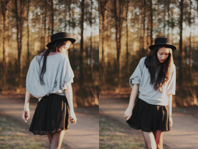 i rushed home from uni and was lucky enough to catch the last hour of sunlight for self portraits. dog walkers and baby strollers passed by and everyone stared curiously at the girl twirling and running back and forth (spot the remote!).