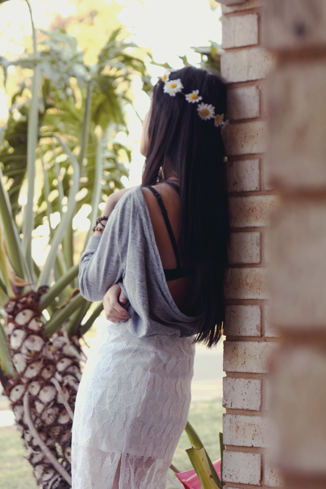 My new obsession is this white maxi skirt which I found at an op shop for a few dollars. I am obsessed with maxi skirts, they are perfect in the colder seasons because they shield my legs from the bitter wind, but this white skirt is perfect for warmer weather which means I can keep my love for long skirts going all year round. The Sportsgirl top with the low back kept me cool today in Sydney's humid weather but it kept falling off my narrow shoulders :(