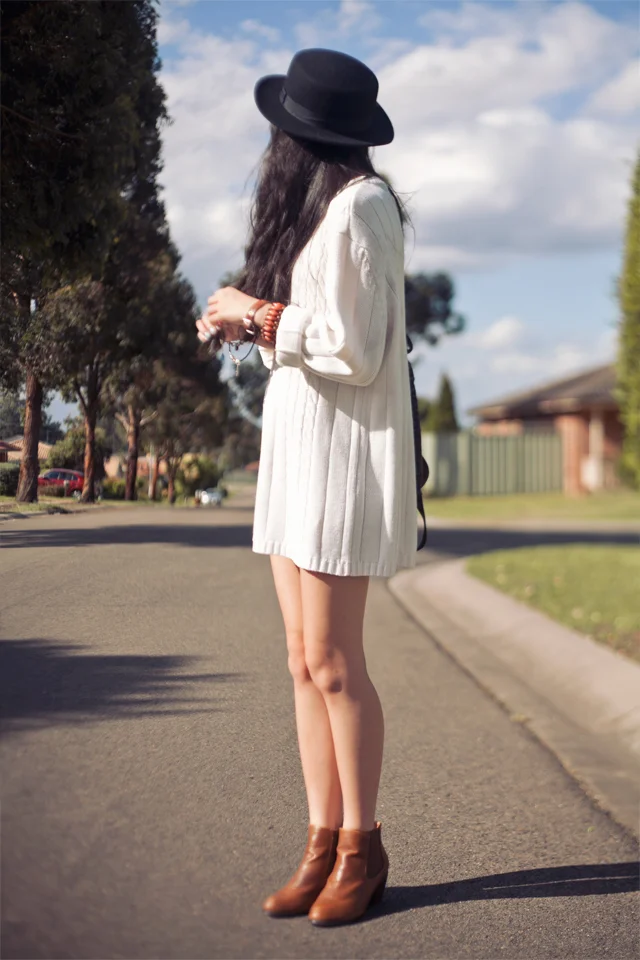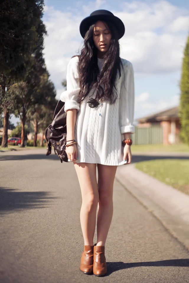 Myer hat, thrifted sweater, Mooloola backpack, ASOS boots