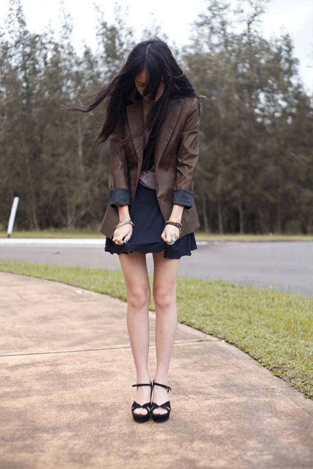 Thrifted blazer / Grandma’s skirt / Forcast Singlet / Mimi Loves Jimi heels (General Pants Co.)