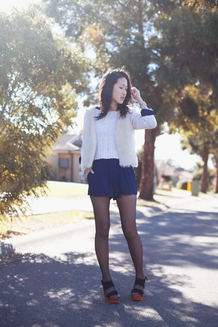 Feeling limited by a piece isn't always a bad thing as it can force you to be more creative, which is something to keep in mind when raiding your mum's/dad's/grandma's closet. Try to look at a piece differently when you're styling it and you'll be surprised with new combinations that you can come up with. I mean, who knew that this knit would be the perfect length to layer over a playsuit?
