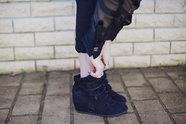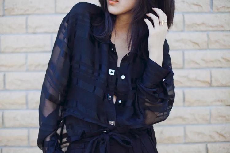 There's nothing like showing a bit of skin the unconventional way to give the illusion that you're being scandalous. A top with sheer sleeves is almost like a skirt with a sheer overlay to just barely show those legs. (And might I add: thin black stockings, yes I mean those thin secretary ones, are so confusingly sexy.)