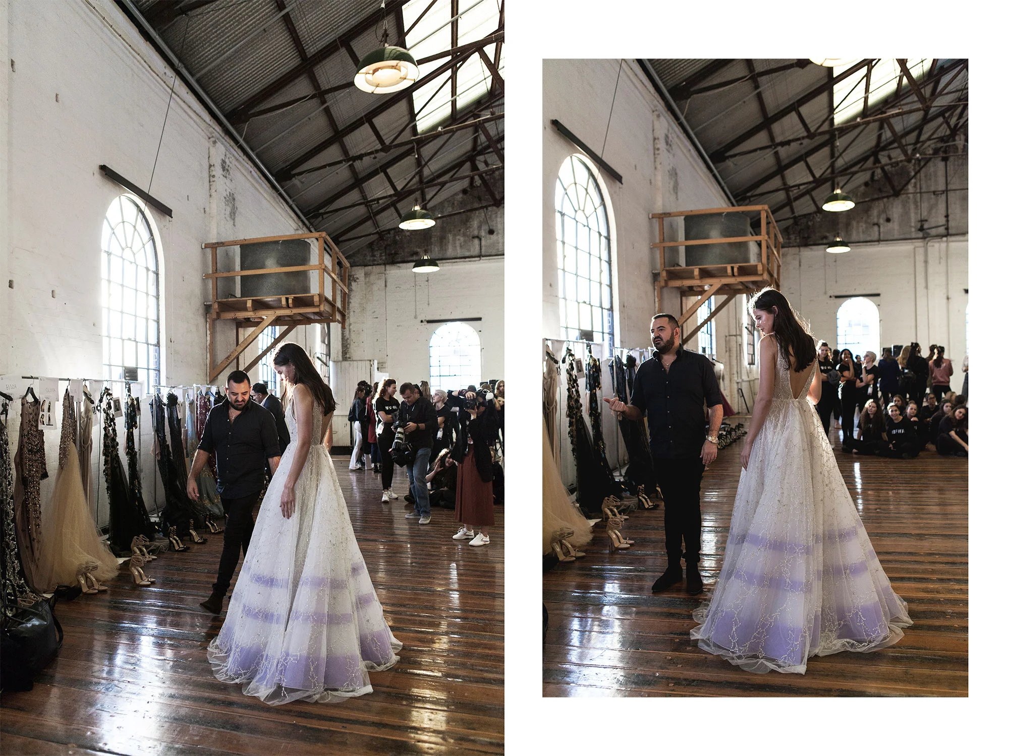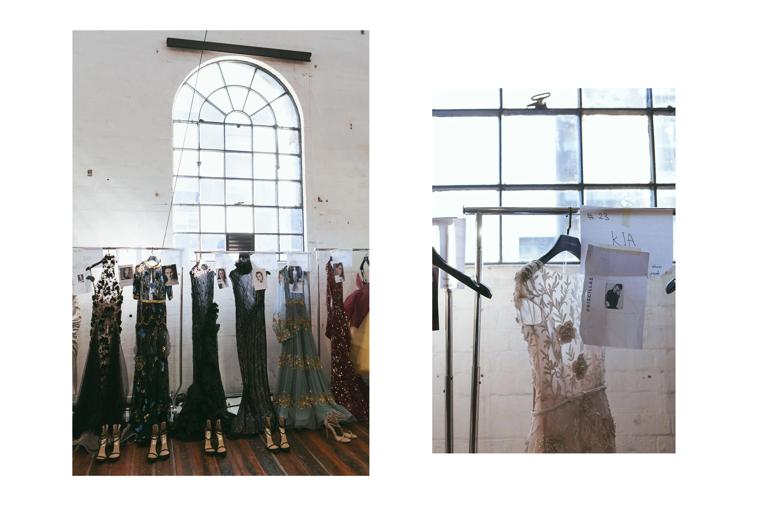 And what a location. Backstage usually takes place behind the runway (you know, quite literally backstage) with dim lighting and cramped spaces, but Steven Khalil backstage was above Elston Room: a loft-like floor filled the room with quickly fading natural light (I couldn't get enough of the windows).