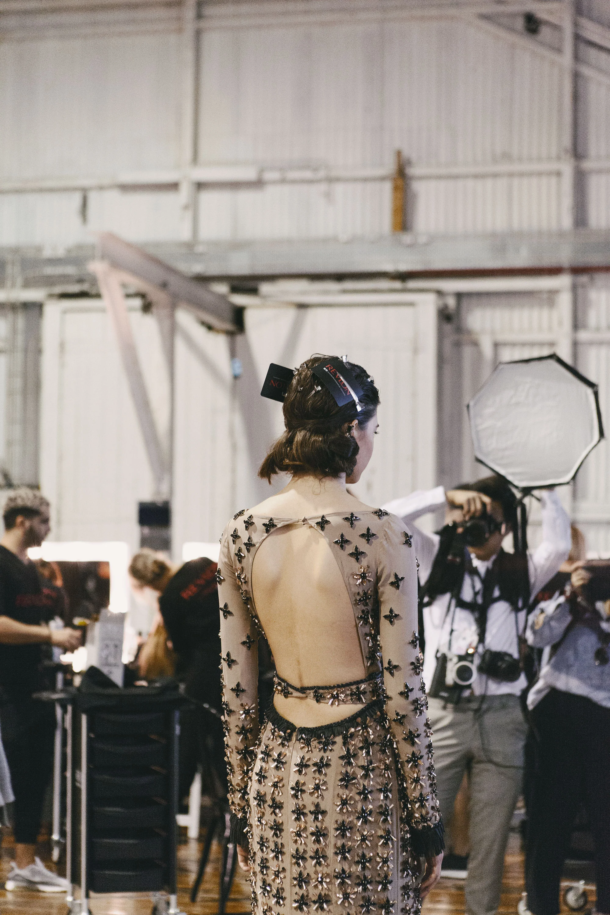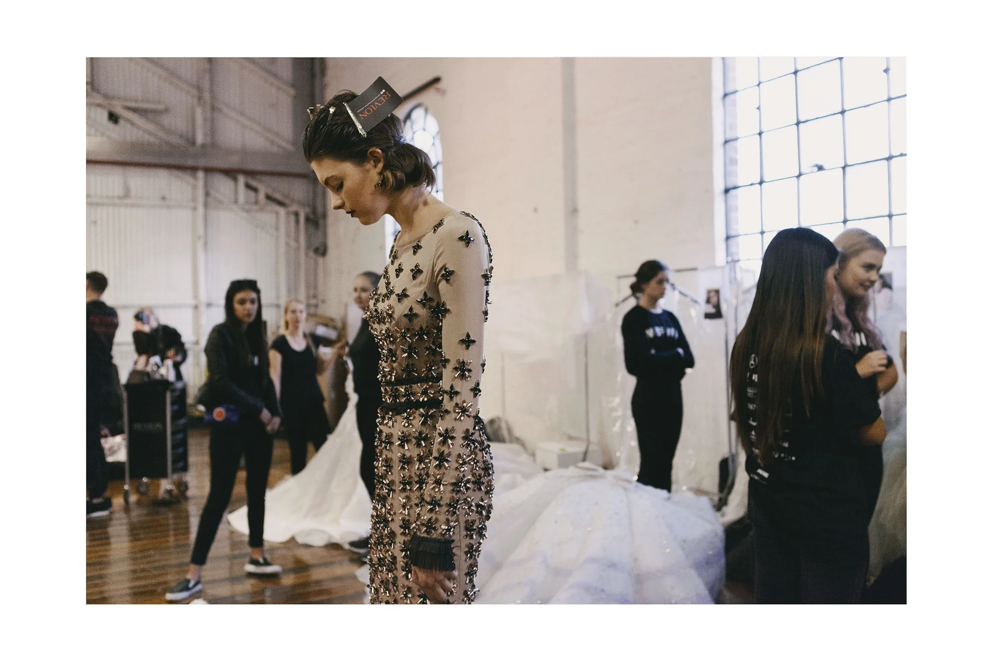Backstage at fashion week is an organised chaos. There's so much going on at the same time, in each corner of the room, that photographers are constantly weaving in and out of models, trying not to get in the way of make-up and hair, snap-snap-snapping away.